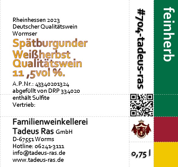 ...Spätburgunder Weißherbst feinherb 11,5 % vol Qualitätswein, feinherb, 0,75 l